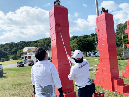 沖縄県今帰仁村中央公民館の柱の塗装ボランティアに参加いたしました。